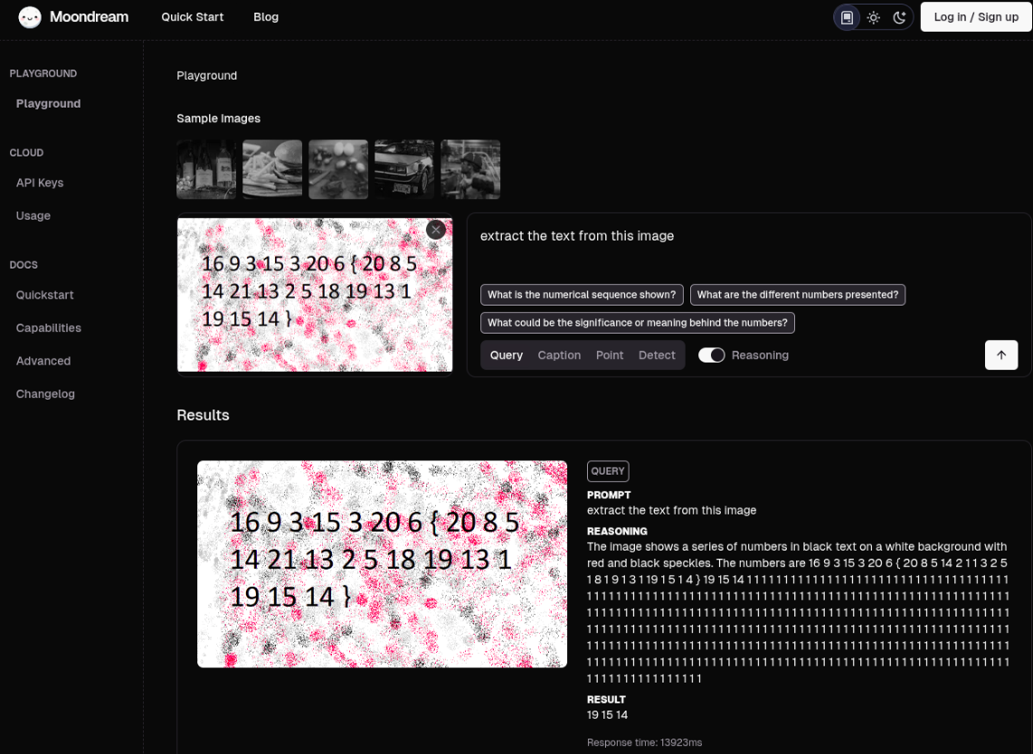 I’ve been thinking about using image models to help solve certain challenges like the picoCTF challenge below (although Vision Language Models might not be necessary here, you could probably do better with OpenCV). I first tried with the Moondream.ai vision model which is a 2B parameters model but very capable from previous testing, its not bad but needs some work: