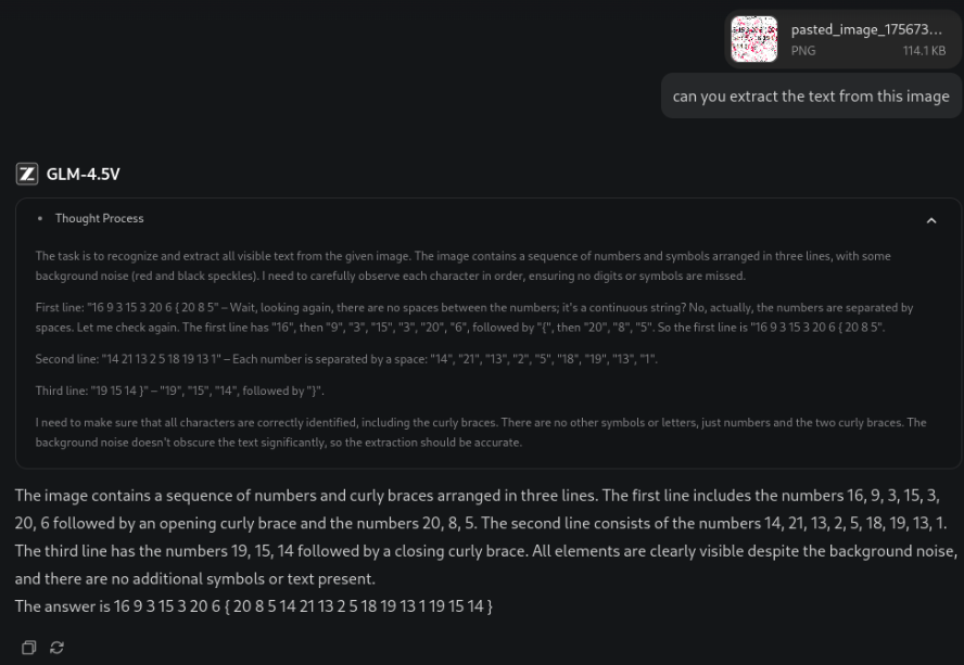 I managed to get better results using GLM-4.5V model which correctly extracted the text from the image: