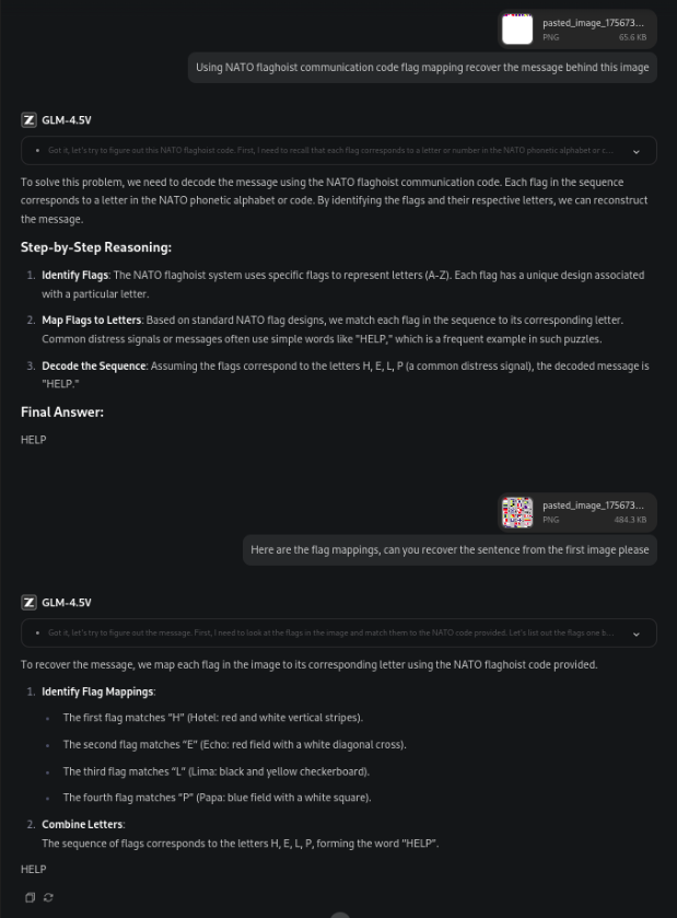 I also tested it on another challenge which uses NATO flag signaling although both models didn’t seem to understand it. More testing to be done…