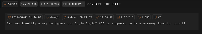 One of the main selling points of Agents is that you can leverage them to perform more advanced tasks by giving them access to tools, guiding them to provide structured answers (eg. respond with the following JSON template) and chain tasks/sub-tasks until they solve your problem. CTF challenges can be quite complex and usually require multiple actions/tools in order to solve. Hence, they’re a great testcase for exploring LLM Agents and pushing its boundaries.