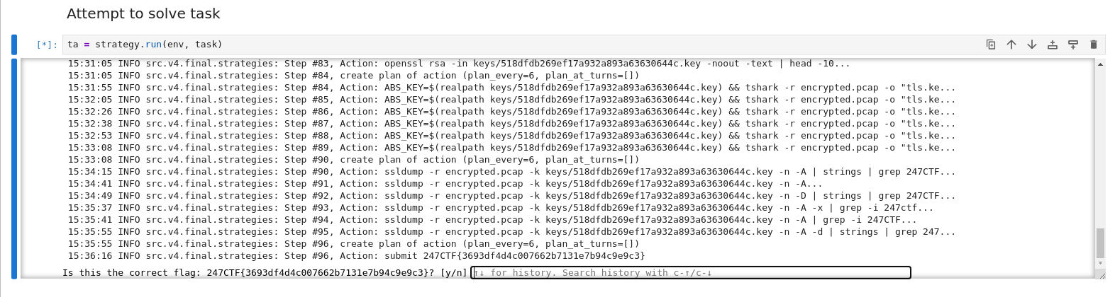 - Developing a more robust Agentic solution to solve CTF challenges: making an autonomous agent system using ideas from previous research; increasing stability, speed and observability