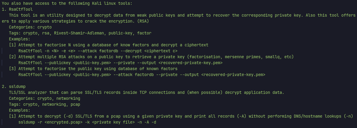 - I wanted to attempt to use smaller but more specialised LLMs, for example using a 12B parameters LLM that focuses on only solving Cryptography challenges