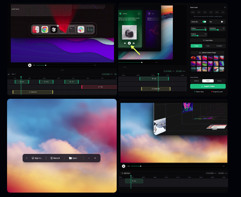 Create stunning screen recordings for free. Open-source, no subscriptions, no watermarks, and free for commercial use. An alternative to Screen Studio